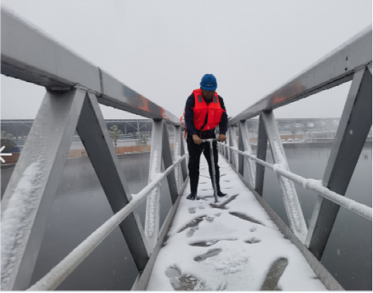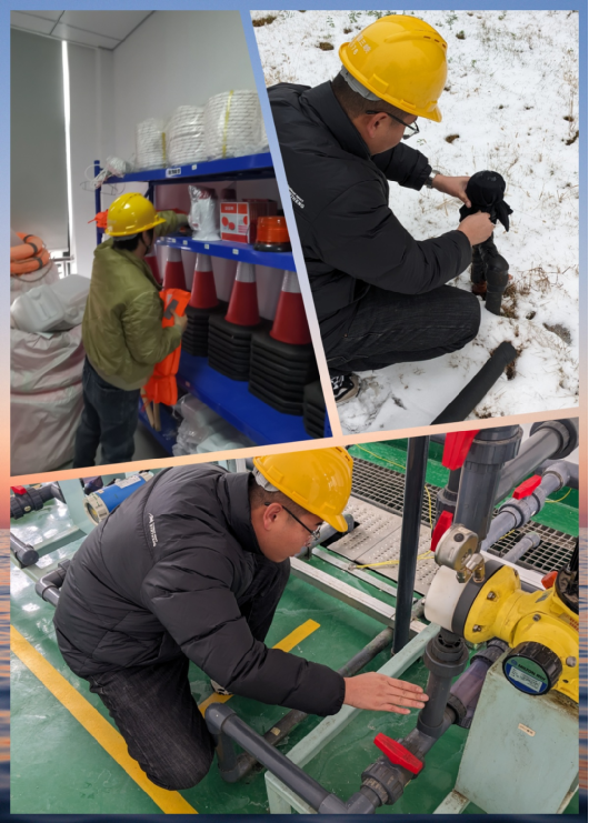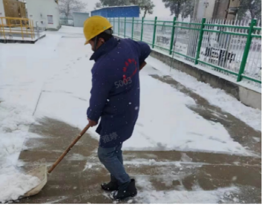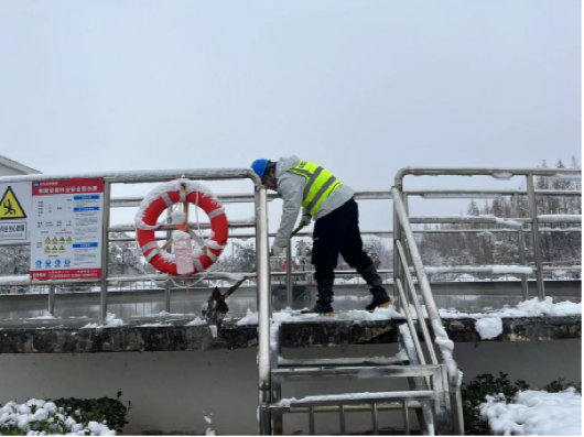 以“雪”為令,行動在前。建立應(yīng)急保障三級梯隊(duì),各生產(chǎn)廠區(qū)“以‘雪’為令”,堅(jiān)持“即下即清”的原則,及時(shí)清理巡視路線、辦公區(qū)域、平流池積雪并鋪設(shè)防滑墊,放置融雪劑、除冰鏟,切實(shí)保障職工人身安全。污水處理廠的管道系統(tǒng)在低溫下容易結(jié)冰,為防止設(shè)備在低溫下出現(xiàn)故障,對所有污水處理設(shè)備進(jìn)行保溫處理,用保溫材料包裹水泵、電機(jī)等關(guān)鍵設(shè)備,以減少熱量散失。