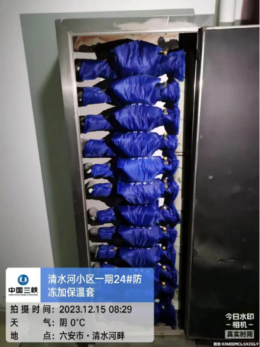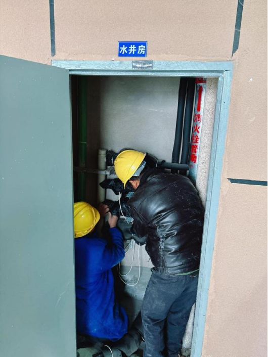 聞“雪”而動,保障在前。全面提高對城市及農(nóng)村供水主管網(wǎng)、供水設(shè)施、排水設(shè)施、管道井、二次泵房的巡查頻次,重點(diǎn)對連廊式、鑲墻式、被陰面裸露小口徑管道通過加裝水表防凍保溫套、包扎表前表后管網(wǎng)保溫管、地埋表填砂、封堵管道井門等方式進(jìn)行防凍保護(hù),防止供水設(shè)施及管網(wǎng)凍結(jié)、凍裂。12月,水務(wù)公司共計(jì)開展地埋表井填砂保溫作業(yè)5424次,水表水管“穿衣戴帽”及包扎作業(yè)2826次,封閉管道井門作業(yè)13673扇。