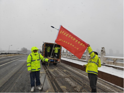 12月18日,蕪湖迎來了首次大規(guī)模強(qiáng)降雪,道路被積雪覆蓋,路上行人車輛都被積雪阻擋。雪落到印著“中國三峽”的淺綠色反光背心上,放眼望去是蕪湖水務(wù)公司各廠工作者們與雪共融的工作場景,他們清理著道路積雪,力保居民出行安全。