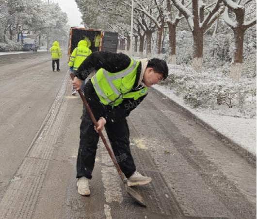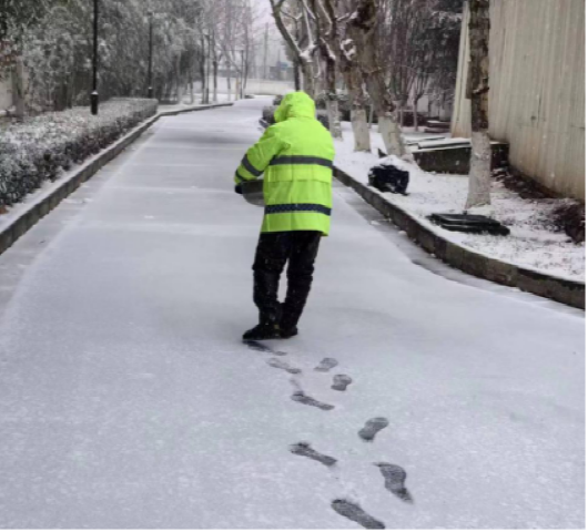 下午3點(diǎn)多,朱家橋片區(qū)管網(wǎng)運(yùn)維部收到經(jīng)開區(qū)經(jīng)管處發(fā)出的支援訊息后,迅速組織“除雪突擊隊(duì)”,以雪為令,與時(shí)間賽跑,全力以赴做好道路掃雪鏟冰工作,確保居民正常通行。