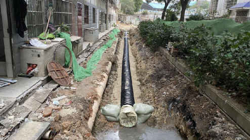 在位于東風(fēng)湖流域的天潤化工小區(qū),工人們正在鋪設(shè)雨水管道和污水管道,控制污染源頭。雨污分流后,污水流入即將移交給三峽集團運營的馬壕污水處理廠,屆時的污水進廠BOD濃度,將比管網(wǎng)完善前提升約30%,污水收集率明顯提高。