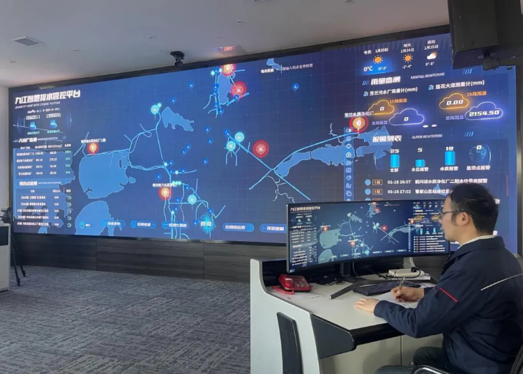 ▲?在江西九江智慧水務調度中心里,工作人員正在監控水務設施運轉,擔當城市的“水管家”。攝影:劉鄧玲