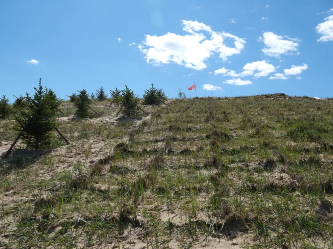 1800公里之外,內蒙古赤峰市克什克騰旗烏蘭布統草原上已是寒風凜冽,三峽集團參與的渾善達克-科爾沁沙地南緣治理一期項目現場,由稻草編制、有序組成的草方格沙障里,一株株草木頑強生長。“建設美麗中國的美好愿景激勵著我們每一名在祖國北疆建設‘綠色長城’的三峽人,我們將以全會精神為指引,積極參與重要生態系統保護和修復重大工程,服務國家重大戰略,助力‘三北’工程打好科爾沁、渾善達克兩大沙地殲滅戰,筑牢北方生態安全屏障。”三峽三北防護林建設(內蒙古)有限公司生產管理部負責人劉彬說道。