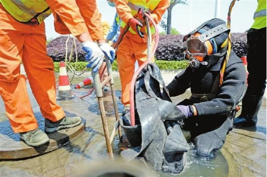 進入五月,蕪湖市的降雨漸漸多了起來,在污水管網(wǎng)中匯成的涌流增加了井下施工的難度。38歲的李俊霞來自江西,入行“蛙人”已有七八年,經(jīng)驗豐富、干事利落,然而眼下的情形也給他帶來了不小的麻煩。