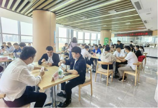 下午2點的南昌食堂內,參賽選手們已各自組隊、準備就緒,已分好的“比賽場地”里座無虛席?!敖鲄^域公司分工會棋牌比賽分為摜蛋組和斗地主組。每類比賽分為晉級賽、半決賽、決賽,比賽規則為……”當江西區域公司分工會組織委員介紹完比賽規則后,所有參賽選手立刻投入到這場“智慧較量”里,場面十分熱鬧。